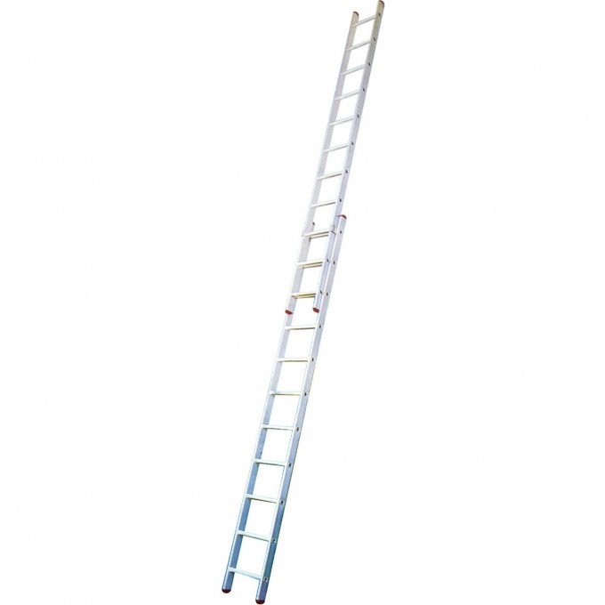Боковые части укреплены длинными профилями которые уплотняют общую конструкцию и делают порог ее грузоподъемности гораздо выше. Шарнирный элемент невероятно подвижный и плотно соединяет секции, а также имеет опорные наконечники, которые используются при установке лестницы как приставной конструкции.