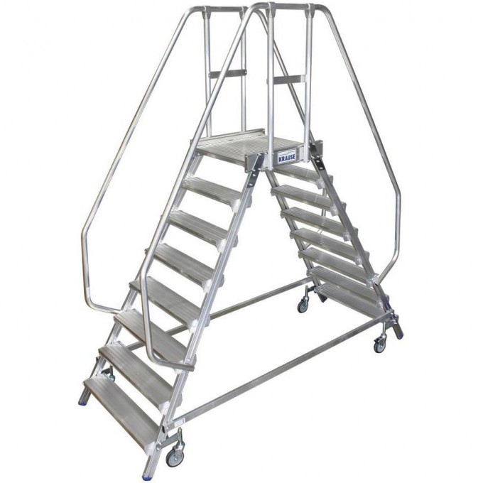 - Простое перемещение. Для удобства транспортировки двухсторонняя лестница-платформа Krause STABILO оснащена поворотными роликами