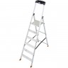 Стремянка Krause MONTO SOLIDO оснащена дугой безопасности и многофункциональной полкой для инструментов. Данная модель часто используется в архивах и библиотеках, где есть стеллажи для хранения больших объемов документации, книг или других различных предметов. Профилированная поверхность ступеней не позволяет ноге соскальзывать во время спуска/подъема, что ограждает пользователя от получения травм.